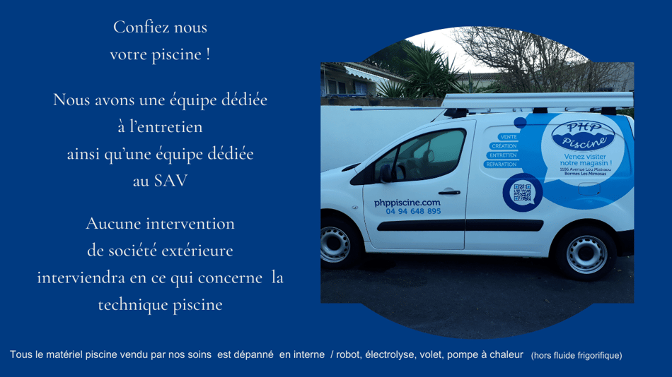Véhicule de la société PHP Piscine pour le service entretien